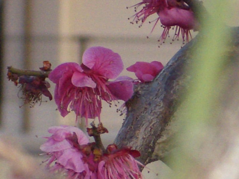 こちらは帰り道、近くの神社で咲いていた梅。もう満開ですね。
