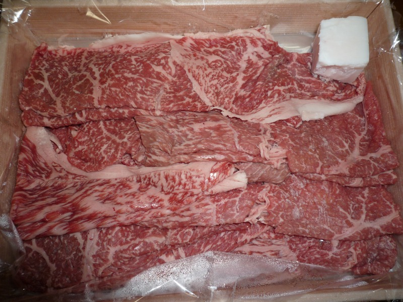 右は見事な霜降り肉 もちろんすき焼きにしていただきました。